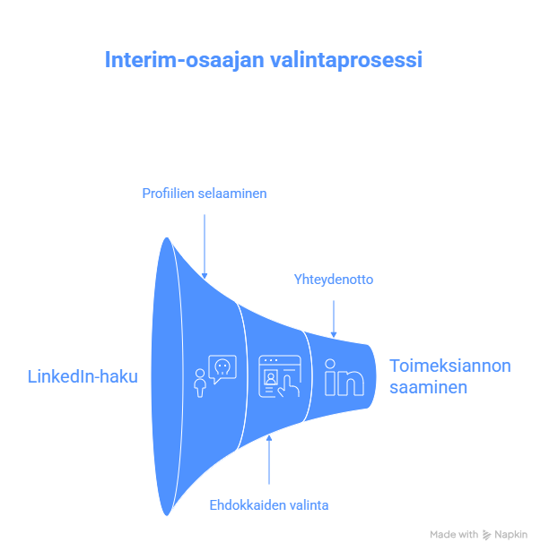 Jos interim-osaajan LinkedIn-profiili ei erotu, häntä ei käytännössä ole olemassa toimeksiantajien silmissä.